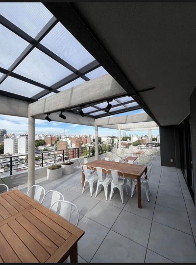 TOTALMENTE EQUIPADO. COMPUESTO POR: 1 DORMITORIO, ESTAR-COMEDOR CON COCINA INTEGRADA COMPLETA CON MUEBLES AÉREOS Y BAJO MESADAS, CON ANAFE A GAS, HORNO ELÉCTRICO Y CAMPANA EXTRACTOR DE AIRE , BAÑO CON CALEFÓN Y DESHUMIFICADOR, Y BALCÓN AL FRENTE A CALLE CONSTITUYENTE.